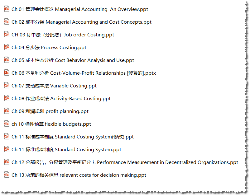 1. 雷·H·加里森等,《管理会计》(14e),东北财经大学出版社,2012,8