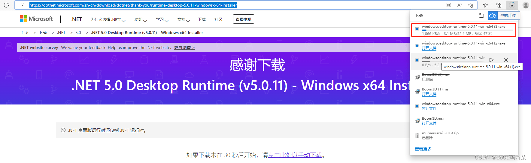 2.点击Yes后会跳转以下网页自动下载运行程序。