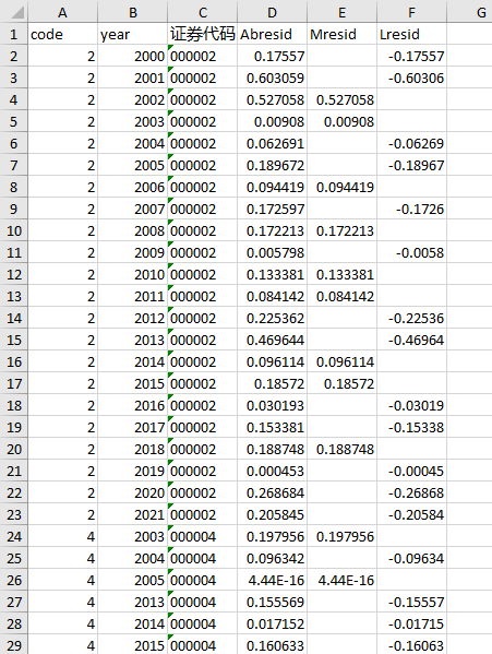 有的文献中还在回归中添加了指标考虑现金红利再投资的年个股收益率(Return)。