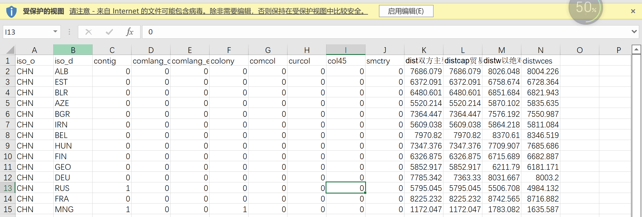 中国和中欧班列沿线国家距离加权值.xlsx