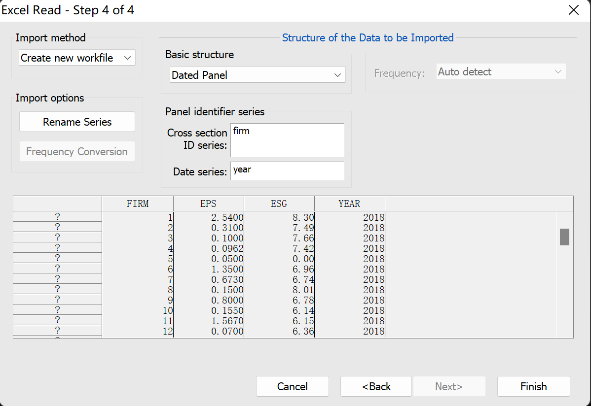 eviews自动识别到面板数据的个体项序列是无效值