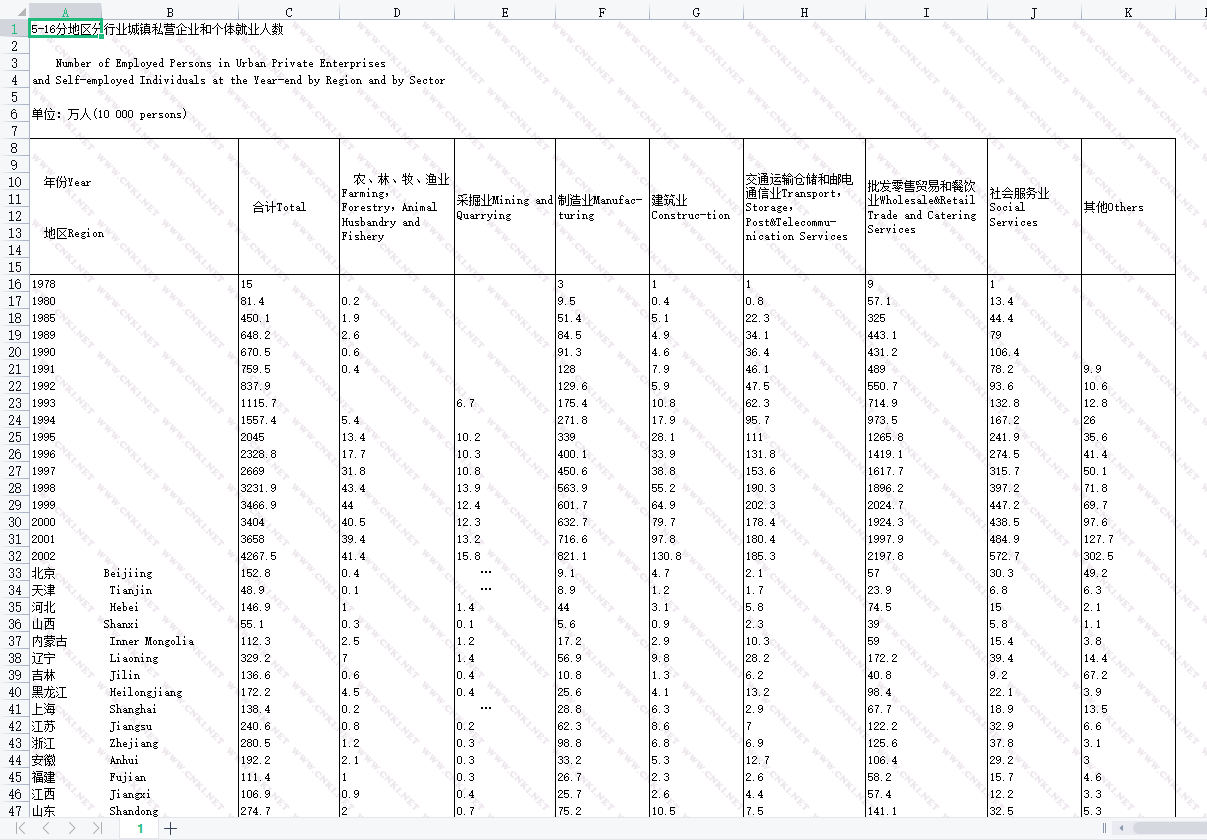 分地区按行业分工商登记注册的城镇私营企业和个体就业人数(2000-2019).zip 大小:(735.36 KB) 只需: RMB 19元 马上下载