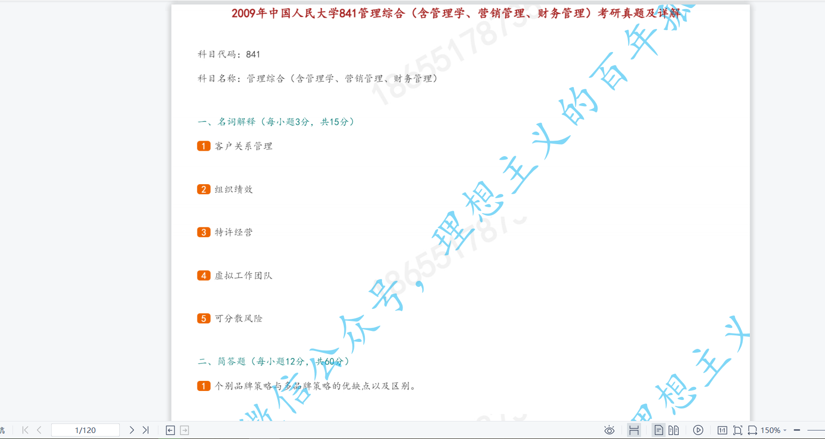 中国人民大学838管理学综合考研真题,pdf版本,可打印