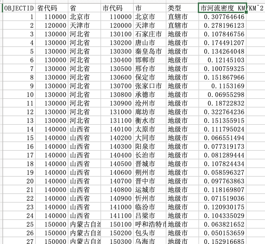 因此,我将河流密度与河流长度数据分享给大家,收取一点工本费。数据描述如下:
