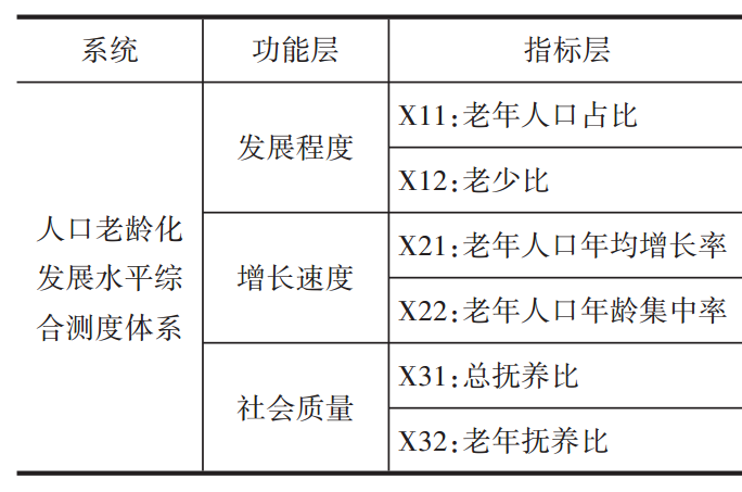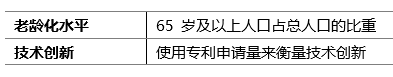 研究以人口老龄化水平为核心解释变量,以产业结构服务化和产业结构技术化作为被解释变量建立面板回归模型。其中,对于老龄化发展水平的评价指标体系如下表所示: