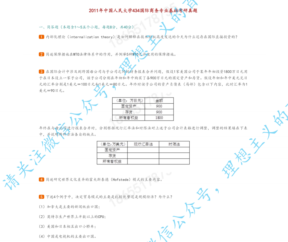 2011年中国人民大学434国际商务专业基础考研真题