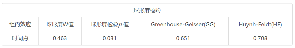 重复测量方差分析球形检验结果