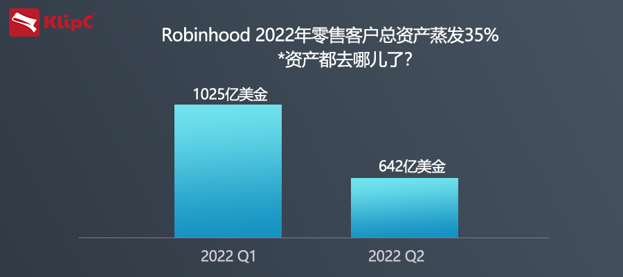 KlipC 行业分析师 Harvey Wong 说:“不止 Robinhood ,其他所有股票券商的交易量都在持续下降。我们看到宏观环境进一步恶化,通货膨胀率处于40 年高点,同时加密货币市场全面崩盘,但货币和大宗商品的交易量在过去一个季度有所增加。”