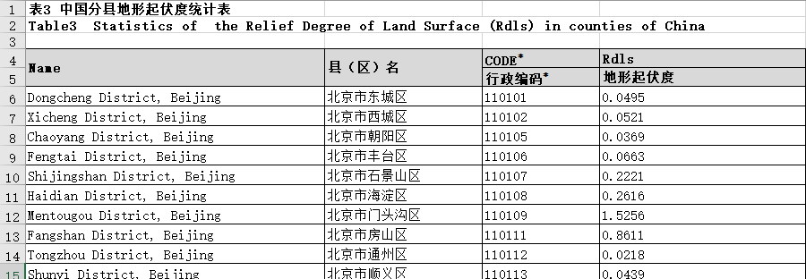 地形起伏度。包括①省②城市③县。