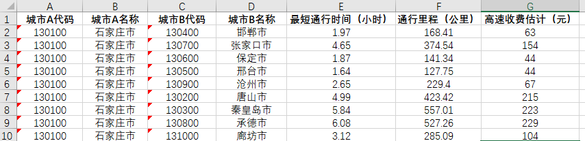 (8)引流数据(来源网络):①CEADs上下载的1997-2019年290个中国城市碳排放清单 ②各地级市之间-公路交通距离数据 ③空间相邻矩阵-市(若两城市相邻则取值为1,反之为0) ④网上售卖最多的中国高铁线路开通数据(截至2021年10月14日) ⑤2003-2018年284个地级市面板数据(
