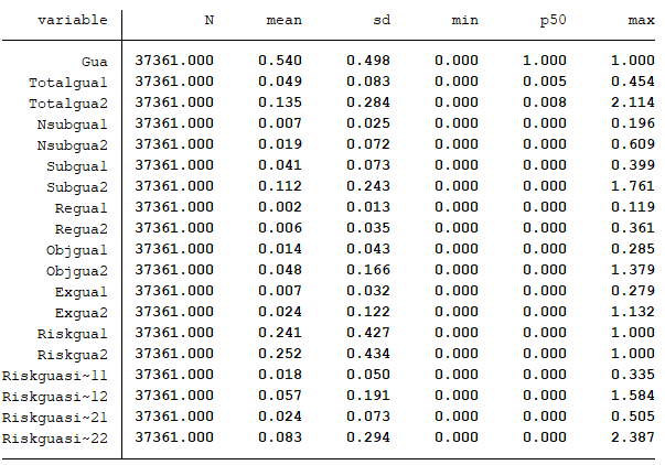 [8]刘成立.对外担保、掏空与外部审计治理效应[J].财贸研究,2010,21(03):131-138.(Totalgua1、Totalgua2、Nsubgua1、Nsubgua2、Subgua1、Subgua2、Regua2、Objgua2、Exgua2、Riskguasize22)