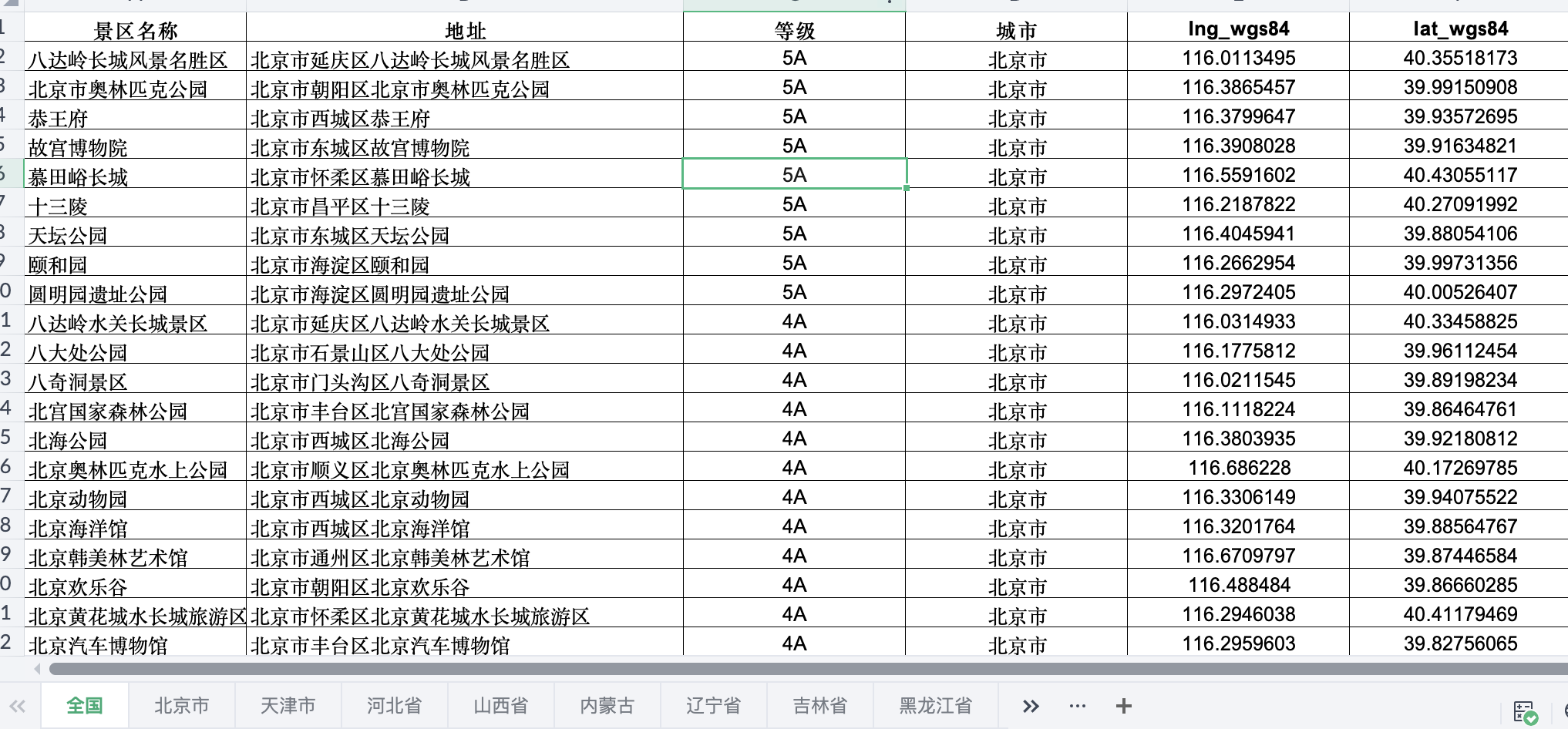 二、13000多个A级景点空间分布数据shp、excel、dbf格式集