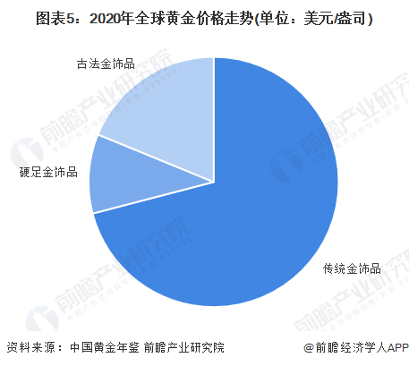从细分产品来看,在2020年消费的490.吨黄金饰品中,传统金饰品零售总量为348.01吨,该类产品的年度零售收入总额为1698.74亿元,传统金饰品占我国黄金首饰消费总量的70.94%;其次为古法金饰品2020年,我国古法金饰品零售总量为92.23吨,与2019年同比增长26 %,占我国黄金首饰消费总量的18.80%,该类产品的年度零售收入总额为542.43亿元,与2019年同比增长67.01%。