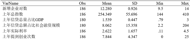 新增企业对数、天眼查,详见前文、数字普惠金融总指数、北大数字金融研究中心、覆盖广度指数、使用深度指数、数字支持指数、人均实际GDP、实际利率、世界银行、人均小贷余额、政府报告中提到创业的次数、政府工作报告