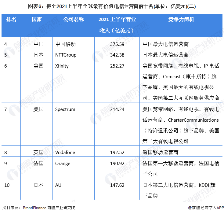 ——全球电信运营服务市场竞争格局:美国大型电信运营商最多,日本次之