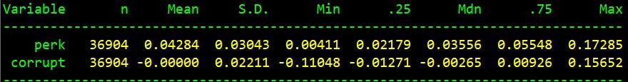 通过模型回归得到的因变量预测值即表示正常的在职消费,实际在职消费与正常在职消费的差额即为非正常在职消费(corrupt)