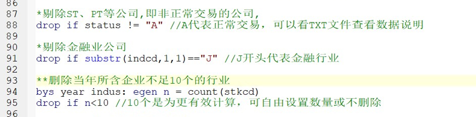 3、行业分类有几个,本次计算以2012年的证监会行业标准,制造业使用二级分类,其他行业使用大类,本文剔除金融行业,如果不希望这样处理可以把对应代码删除或不运行