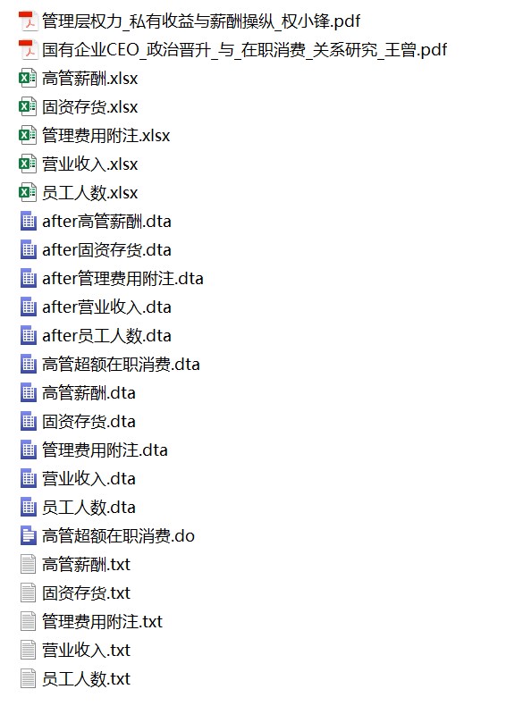 参考文献:[1]王曾,符国群,黄丹阳,汪剑锋.国有企业CEO“政治晋升”与“在职消费”关系研究[J].管理世界,2014(05):157-171.[2]权小锋,吴世农,文芳.管理层权力、私有收益与薪酬操纵[J].经济研究,2010,45(11):73-87.