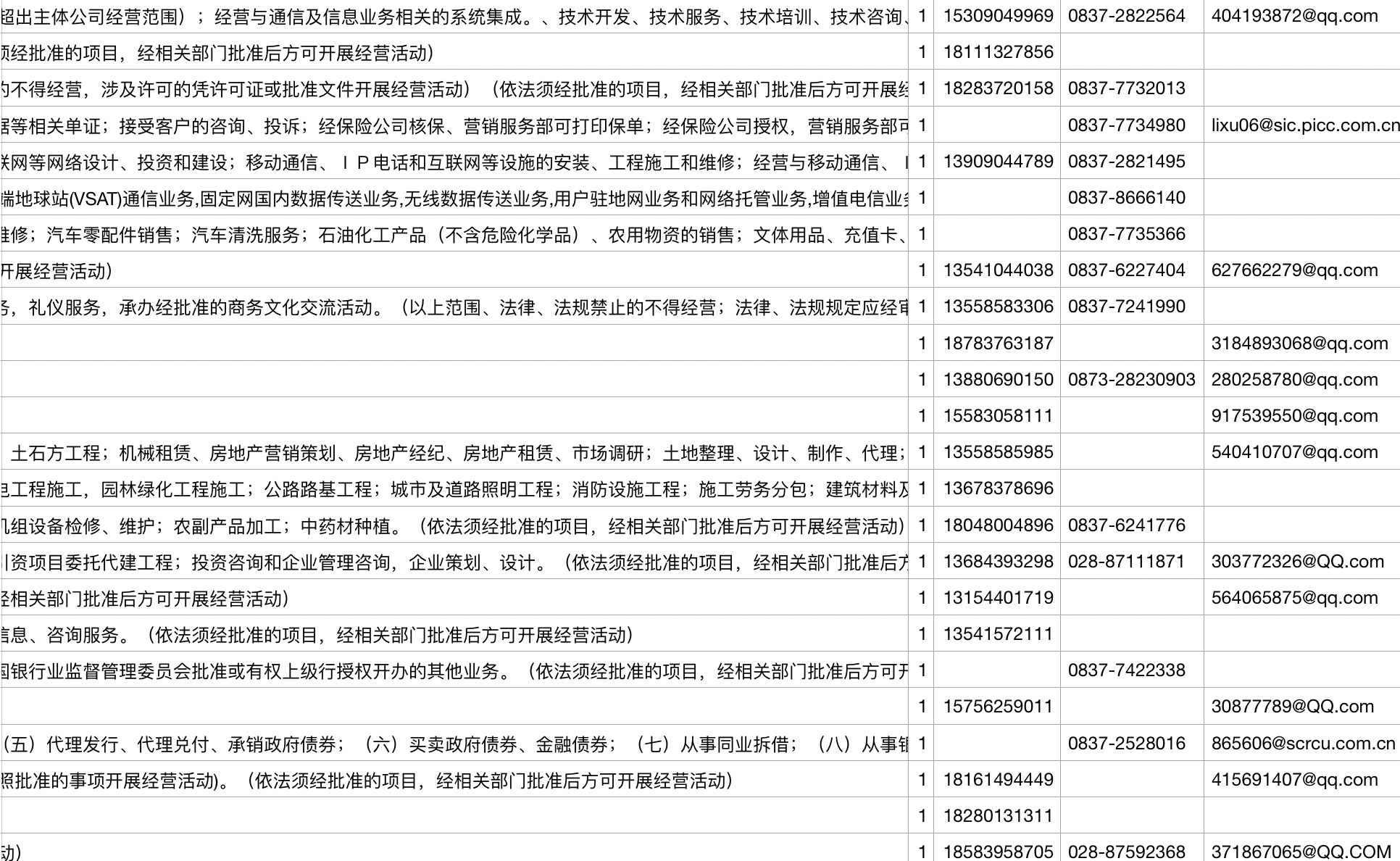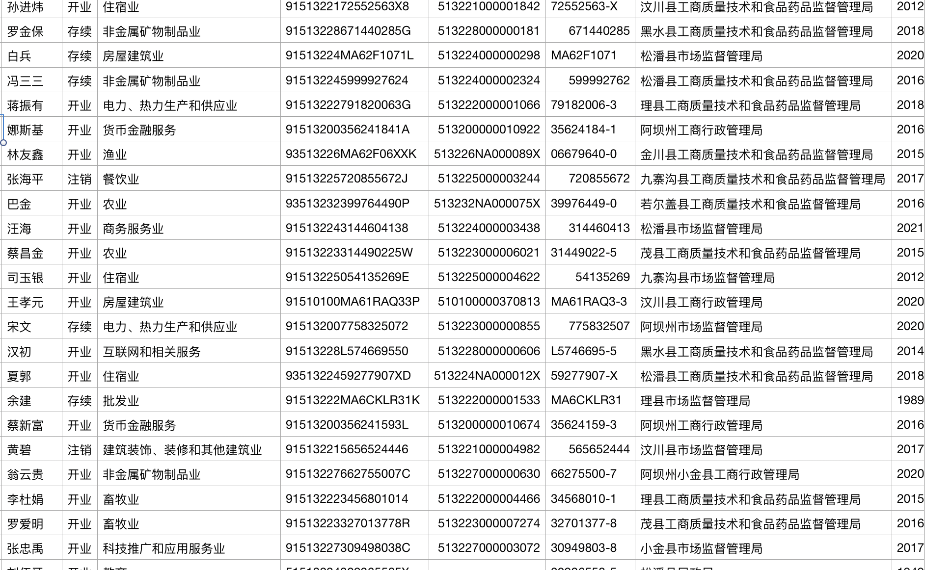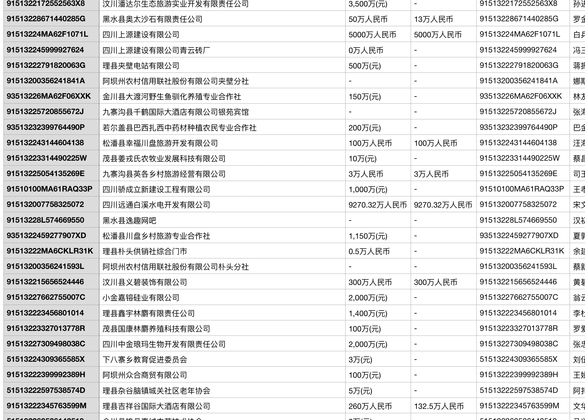 社会信用代码 公司名称 注册资本 实缴资本 注册号 法定代表人 经营状态 所属行业 纳税人识别号 工商注册号 组织机构代码 等级机关 审核/年检日期 成立时间 企业类型 营业期限 行政区划 省份code 注册地址 经营范围 状态 移动电话 座机电话 邮箱