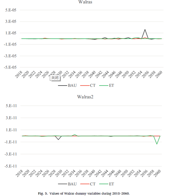 4.1.效用函数S-G,CES,C-D,还是CDE ?和GTAP 标准模型(Corong et al., 2017)一样,我们也采用弹性常数差(CDE)系统。这样设置的好处是,产品消费的估计收入弹性和价格弹性有设置的余地,可以用现有文献中的收入弹性和价格弹性进行校准,更符合实际情况。4.2.凯恩斯还是新古典主义?本文建议在考虑长期模拟时,可以考虑使用新古典主义的宏观封闭,因为长期失业率很难设定合理的曲线,也很难设定合理的因子和劳动回报曲线。充分就业的直接假设也是相对客观的。而在模拟短期影响(或研究金融对就业的影响)时,可以(必须)使用凯恩斯的宏观闭合。4.3.弹性调整CES函数的弹性设置不是由模型本身决定的,而是由建模者外部给出的。因此,弹性设置一直受到很大的批评。本文的弹性集参考AIM/CGE2.0和Lou (2015)。