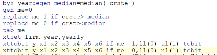 replace size_dum1=1 if ln_size > med_size // 按中位数划分 大规模