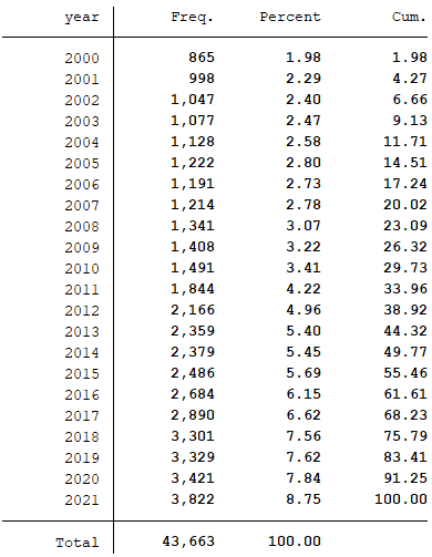 样本选择:全部A股2000-2021年数据(初始数据是从1990年开始,选取数据处理的起点为2000年,可自行更改数据计算区间)