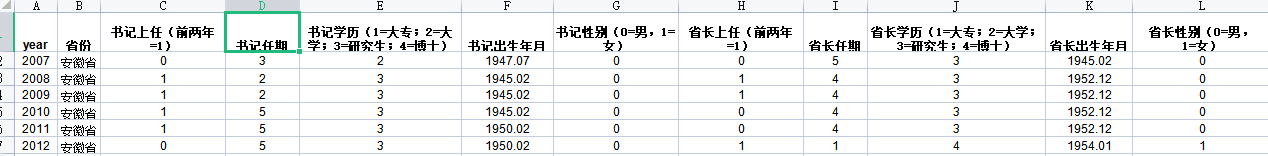 省长学历(1=大专;2=大学;3=研究生;4=博士)