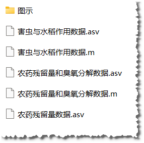 数学建模MATLAB相关程序与数据,害虫与水稻作用数据,农药残留量和臭氧分解数据