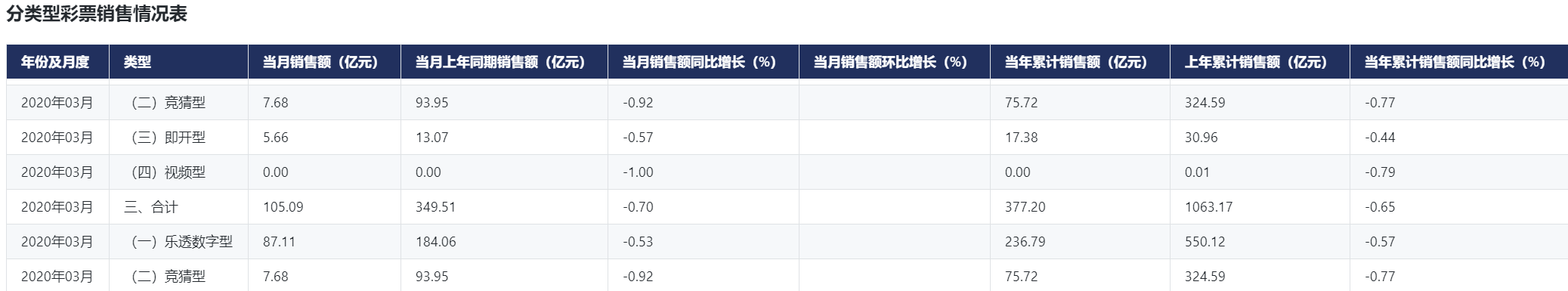 分类型彩票销售情况表:2009.04-2022.01(2020年2月数据未披露)