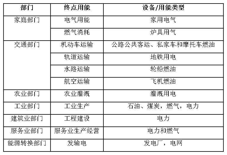 表2 能源需求部门和转换部门