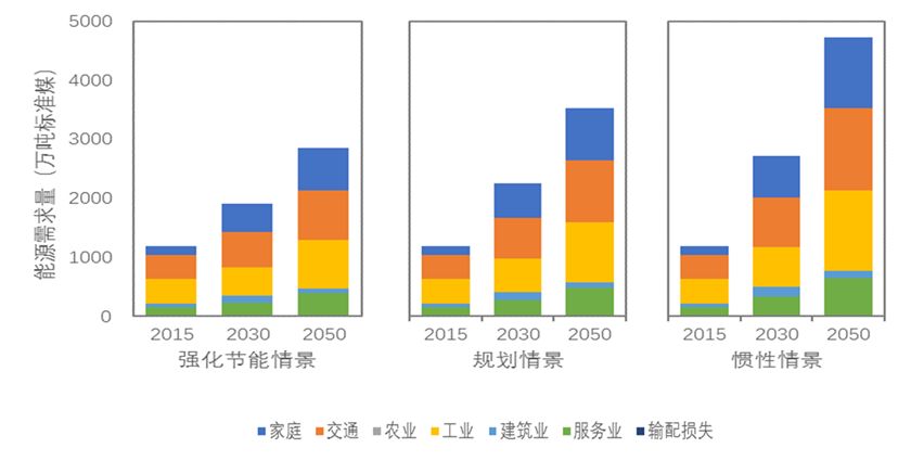 图5 不同情景下的分部门能源需求预测