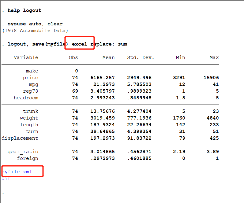 stata各种输出结果命令用excel格式最后输出的都是后缀为xml格式的文件