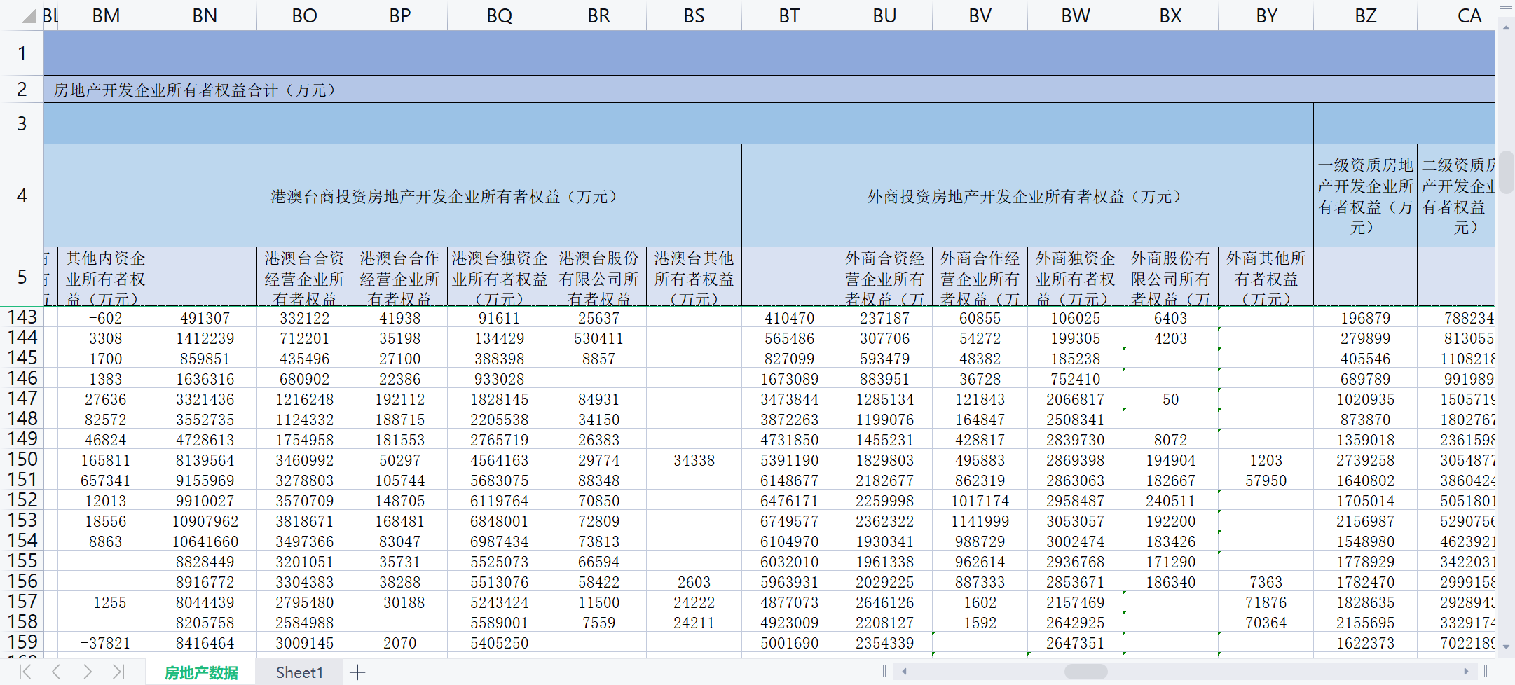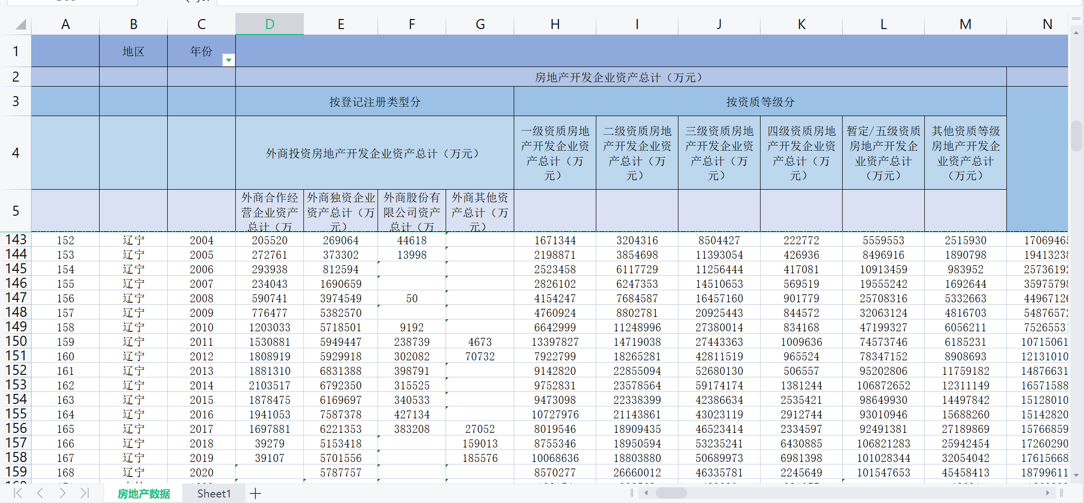 资源名称:1999-2020年长时间序列中国房地产统计面板数据