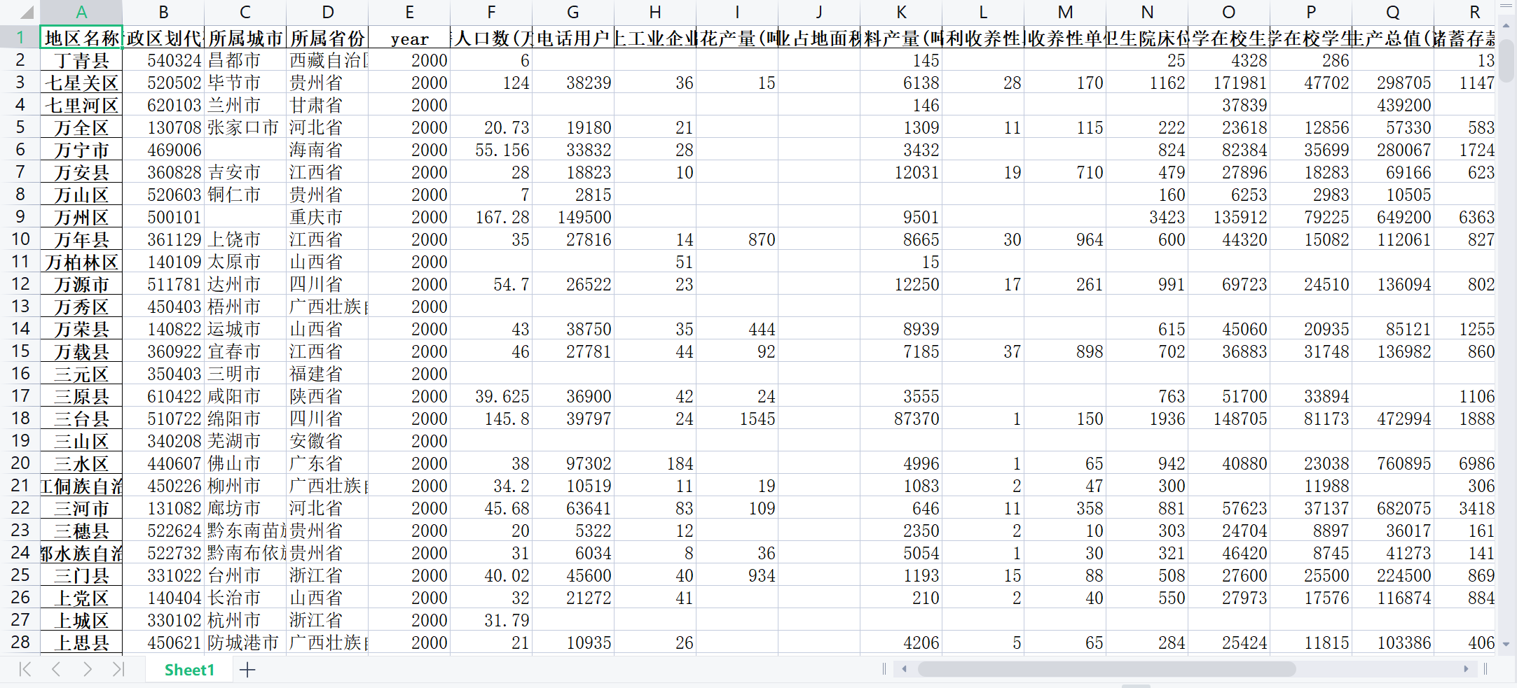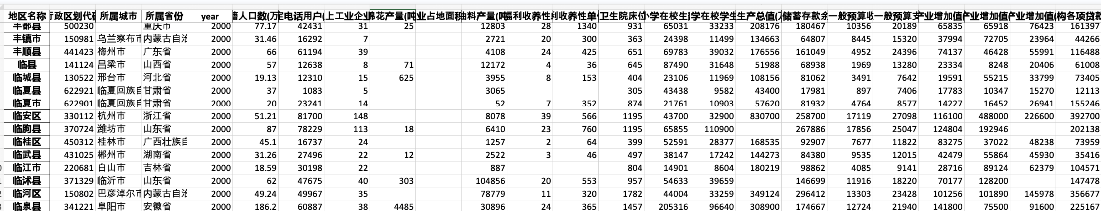 2000-2020全国区县数据集