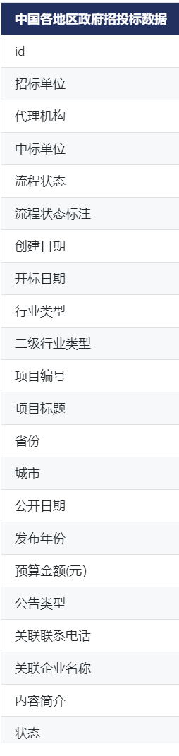 中国各地区政府招投标数据