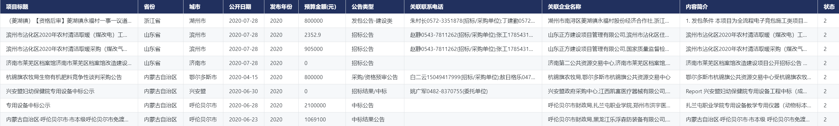 的招投标信息,完整展现了