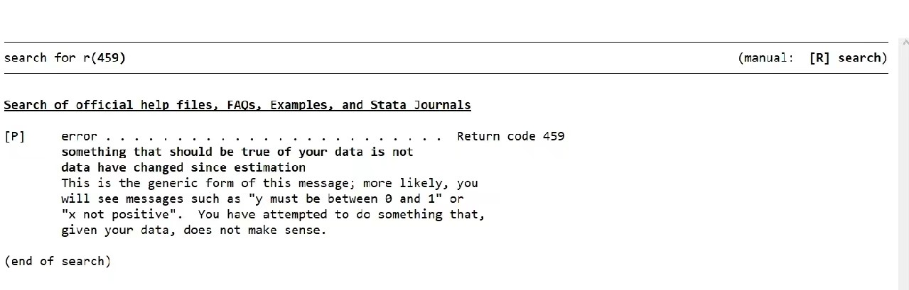 大神们,求问stata输入命令显示错误代码r(459)应该怎么处理呢