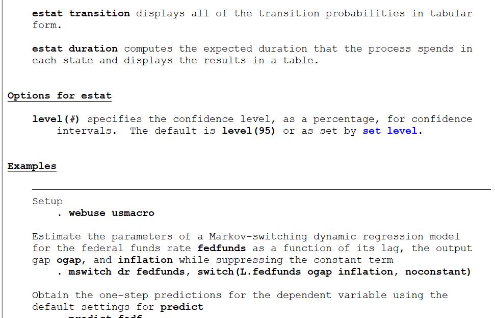 大神们求助!我要进行一阶马尔科夫过程命令,但是一直出现错误代码r459,应该怎么解决呢?求大神们帮忙非常感谢!现在一直卡在这里,导致论文进度停滞不前,非常无奈啊!图一是我输入的命令,图二是r459的stata解释,图三是stata搜索的mswitch语句。或者有没有关于解释变量是被解释变量的滞后一阶的其他回归方法呢?