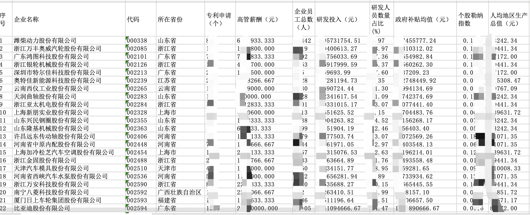 全国60家汽车制造企业2017-2019年数据集-省份专利高管薪酬研发投入员工数补贴勒纳指数