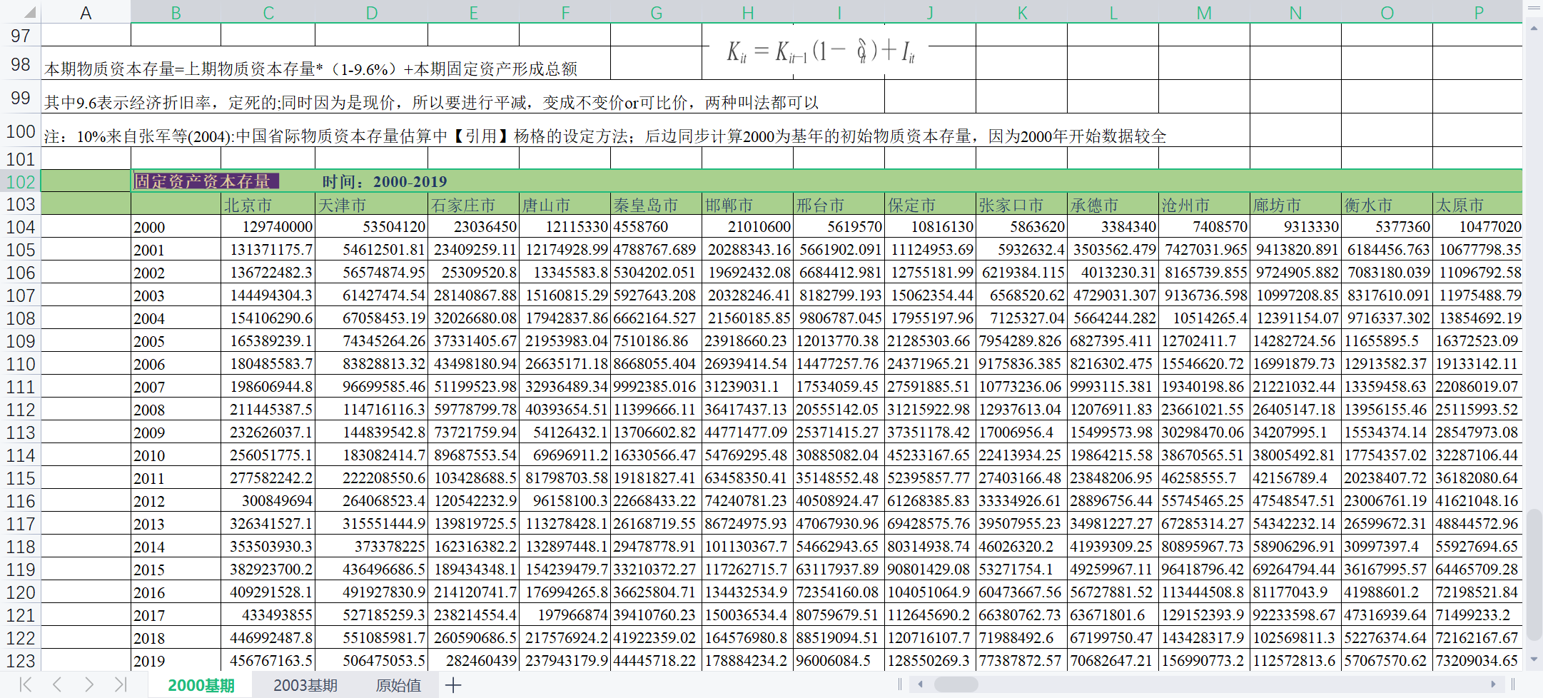 2000-2019年地级市固定资产投资额名义值及资本存量