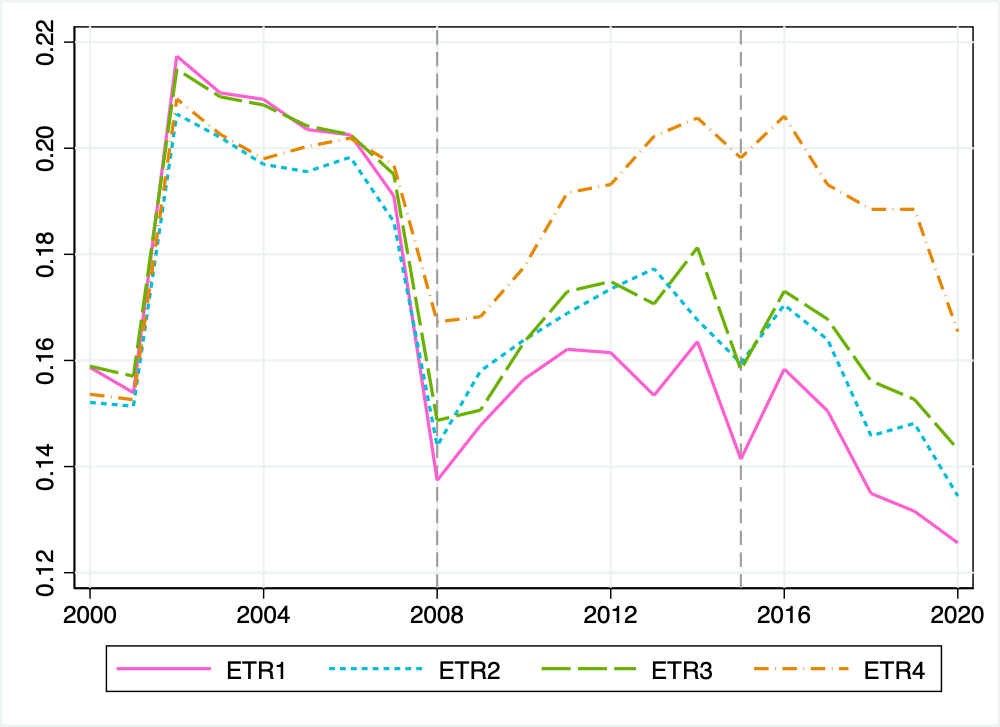 4. ETR4:仅考虑当前所得税费用与利润总额的关系,完全忽略了递延所得税。