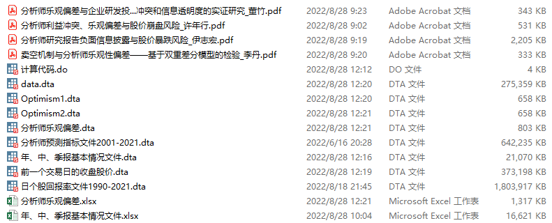 [2]李丹,袁淳,廖冠民.卖空机制与分析师乐观性偏差——基于双重差分模型的检验[J].会计研究,2016(09):25-31.(Optimism1和Optimism2)