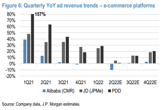 [backcolor=rgba(97, 155, 139, 0.09)]在 2022 年初,市场普遍预期22年第一季度的同比增长率将出现最差,因为垂直行业受到干扰(例如教育、游戏审批暂停、互联网公司的成本优化举措)以及个人信息保护法 (PIPL) 等法规受到影响 在更广泛的广告行业。