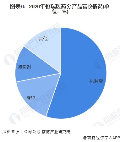 2020年,恒瑞医药抗肿瘤药业务实现营业收入152.68亿元,同比上涨44.37%,其营收占比最高,为55.29%。