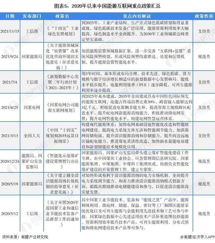 2020年以来,国务院、国家发改委、能源局、工信部等多部门陆续印发了支持、规范能源互联网行业的发展政策,内容涉及能源互联网行业的发展目标、推进工作等方面: