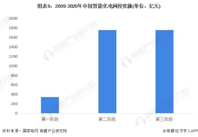 国家电网公司发布的国家智能化规划总报告显示,电网三个阶段的计划总投资规模分别为5510亿元、15000亿元和14000亿元,其中,智能化投资分别为341亿元、1750亿元、1750亿元,占比从第一阶段(2009年-2010年)的6.19%上升至第二阶段(2011年-2015年)的11.67%,并进一步提升至第三阶段(2016年-2020年)的12.5%。