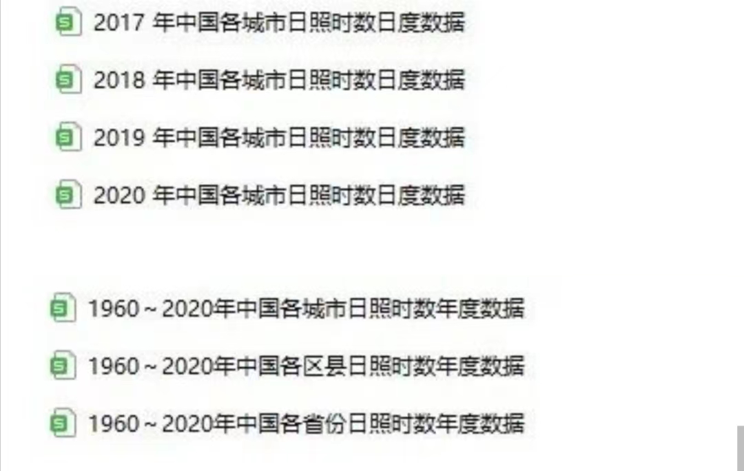 数据名称:各省份,城市,区县日照数据时间跨度:1960年至2020年