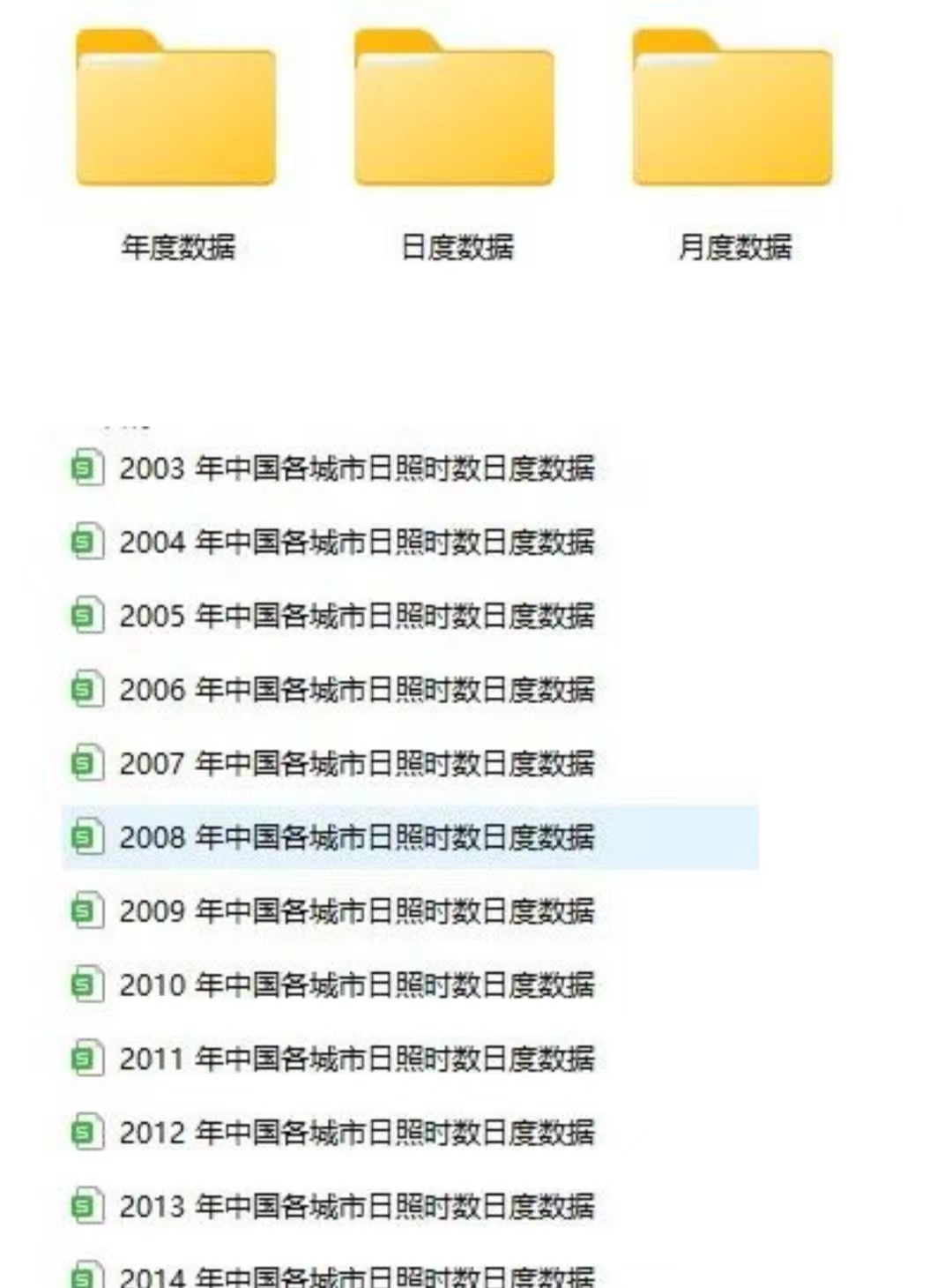 包含指标:日照数据,分为逐年,月,日数据