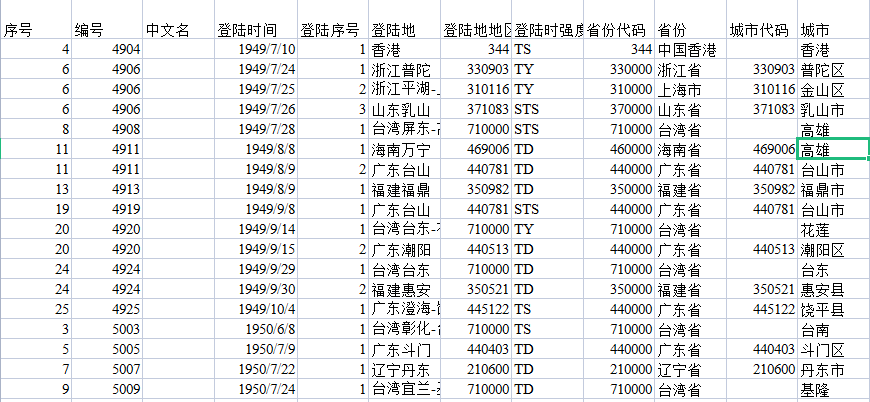 序号 编号 中文名 登陆时间 登陆序号 登陆地 登陆地地区代码 登陆时强度等级 省份代码 省份 城市代码 城市