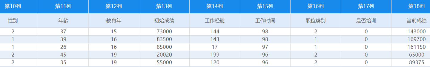 某企业想评价专项培训的效果,现收集到78位员工的个人及工作成绩信息,包括性别、年龄、教育年、初始工作成绩与当前工作成绩、工作经验、工作时间、职位类别、是否参加培训等数据。